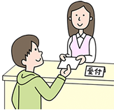 受付にて保険証(お持ちの方はその他の医療証や紹介状など)をお預けください。